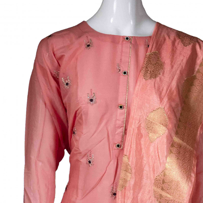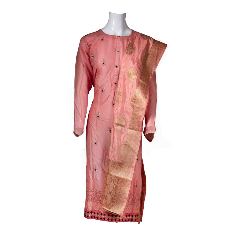 - Peach color unstitched cotton salwar.