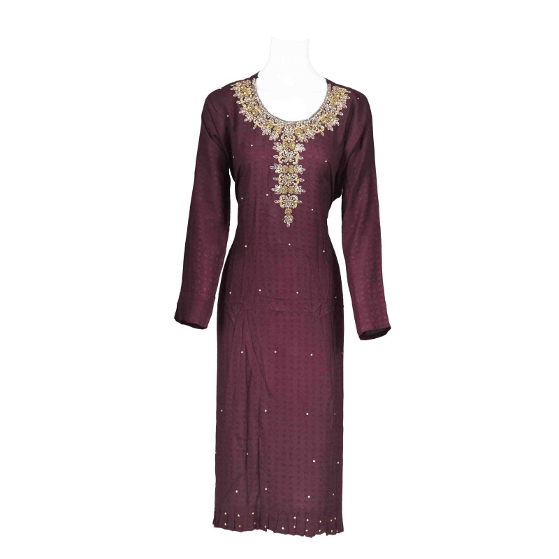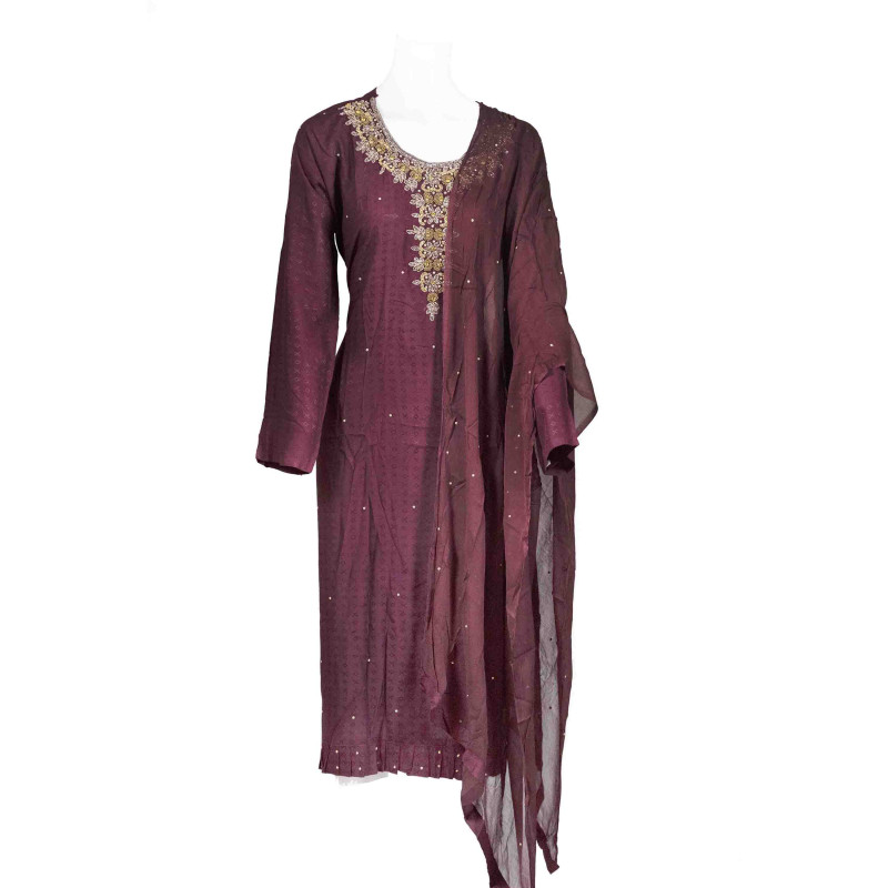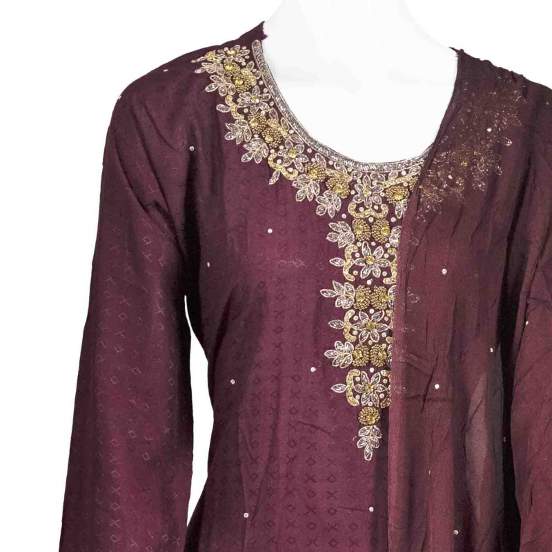 - Embroidered kameez with Karchupi work, Shalwar and Georgette Dupatta , Full sleeve .