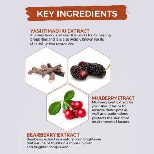 -Bearberry Extract: Bearberry extract is a natural skin brightener that will helps to attain a more uniform and brighter complexion.