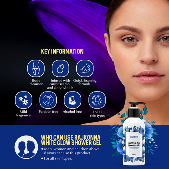 Benefits of Rajkonna White Glow Shower Gel.