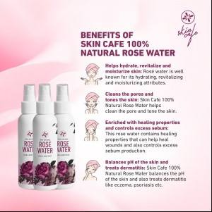 -The rose water works as a natural astringent toner that deep cleanses and brightens your skin, also tightens your pores.