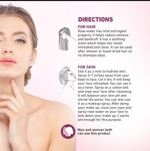 -For Hair: Rose water has mild astringent property. It helps reduce oiliness and dandruff.