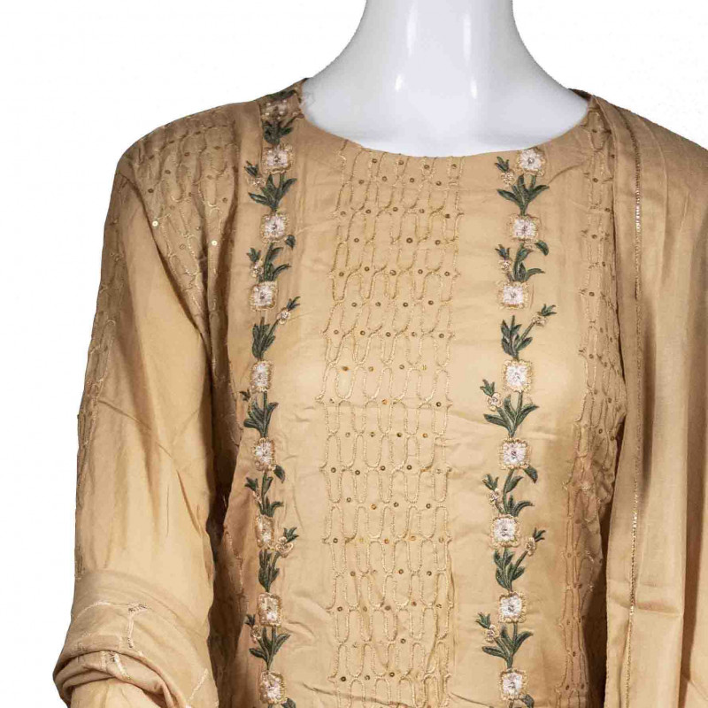 | Product Name | Soft Cotton Embroidered And Chanderi Work Suit |