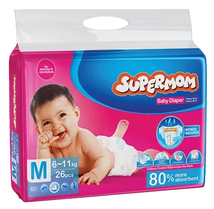 Supermom has everything you could ask for in a diaper. It is 80% more absorbent than regular diapers. It is completely leakage proof, super fitting and the cloudy, cottony top sheet ensures that your baby will be very comfortable.