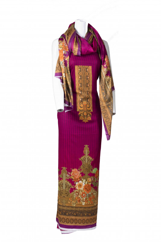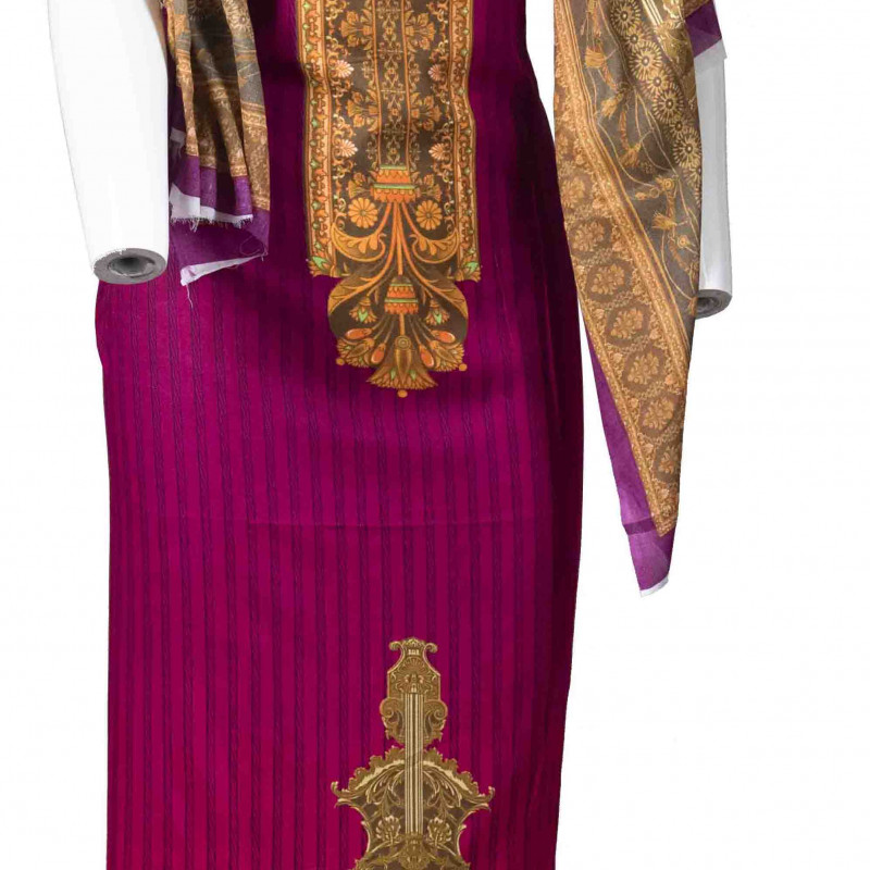 - Deep Pink printed kameez with Shalwar and Dupatta , Three Quarter sleeve , Deep Pink Salwar , Printed Dupatta .