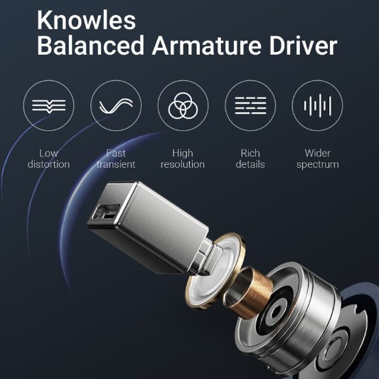 7mm Dynamic driver & Knowles balanced armature driver can enhance sound resolution, bringing a clearer treble and realistic listening experience.